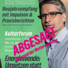 12.01.26 - Die für heute Abend geplante Veranstaltung mit Sven Giegold wurde schweren Herzens abgesagt. Grund ist die aktuelle Unwetterwarnung. Bei einer solchen Wetterlage möchten wir niemanden dazu ermutigen, sich auf den Weg zu machen. Die Sicherheit aller Beteiligten steht für uns an erster Stelle. Die Entscheidung ist uns nicht leicht… Mehr
