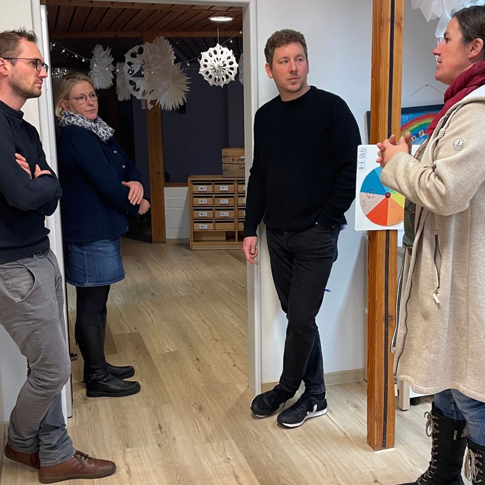 Am (16.12.) war Joachim Fuchs, Grüner Direktkandidat im Wahlkreis Stade I – Rotenburg II, gemeinsam mit Pascal Mennen, Mitglied der Grünen Landtagsfraktion, in Bremervörde unterwegs. Im Rahmen seiner Bundestagskandidatur möchte der Sauensieker Land und Leute in seinem Wahlkreis kennenlernen. Während der Tour besuchten beide zuerst die DRK Kita, um mit der Leitung über frühe Hilfen für Kinder mit Förderbedarf sowie eine gute Bildung in der Kita zu sprechen. Dabei kamen auch das niedersächsische Kitagesetz und die Wege in die Ausbildung, gute Arbeitsbedingungen zur Sprache und was der Bund dafür tun kann.