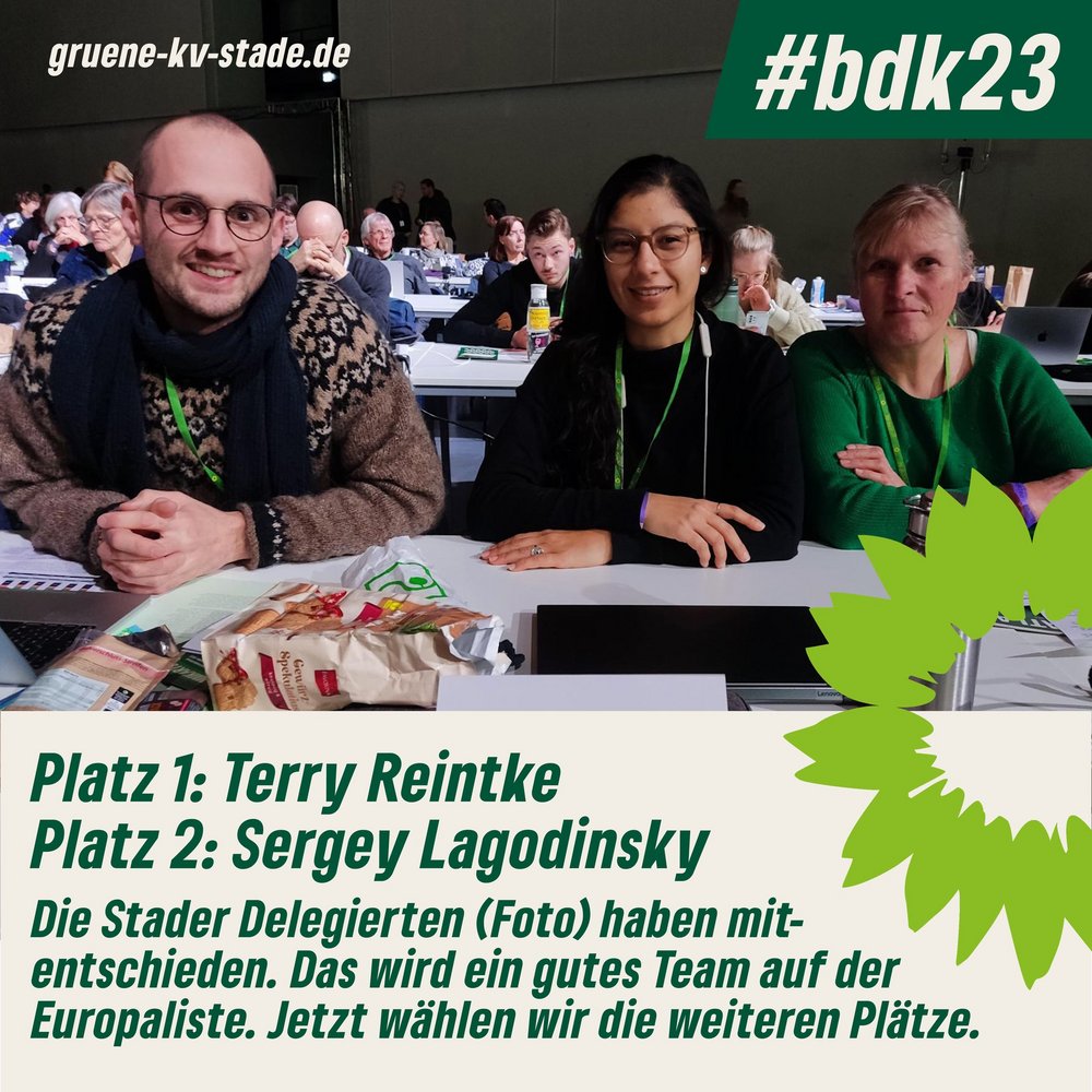 Unsere 49. Bundesdelegiertenkonferenz in Karlsruhe hat gezeigt: Als Partei machen wir GRÜNEN ein umfassendes politisches Angebot für die Breite der Gesellschaft. Drei Mitglieder aus dem Kreisverband Stade haben in Karlsruhe mitentschieden (Joachim Fuchs, Amalien Meyer, Ina Ecks). Wir haben unsere 40-köpfige Europaliste gewählt und Terry Reintke und Sergey Lagodinsky führen die Liste zur Europawahl 2024 an.