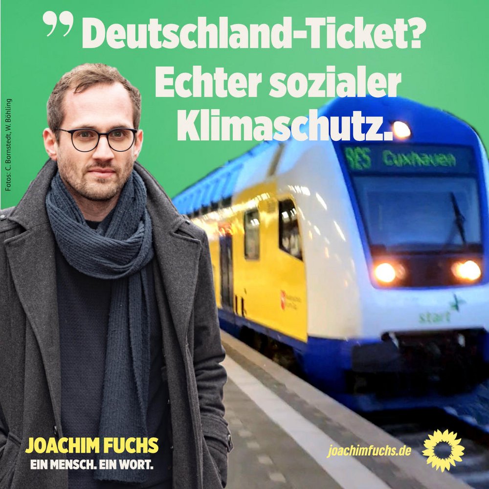 Joachim Fuchs: „Das ist ein Beispiel für sozialen Klimaschutz, das weiter ausgebaut werden muss“. Er tritt dafür ein, dass es günstiger statt teurer sowie dauerhaft finanziert sein muss. Auch die Einführung eines Sozialtickets für Menschen mit wenig Geld sieht er als dringend an. „Dafür trete ich an“, sagt Joachim Fuchs.