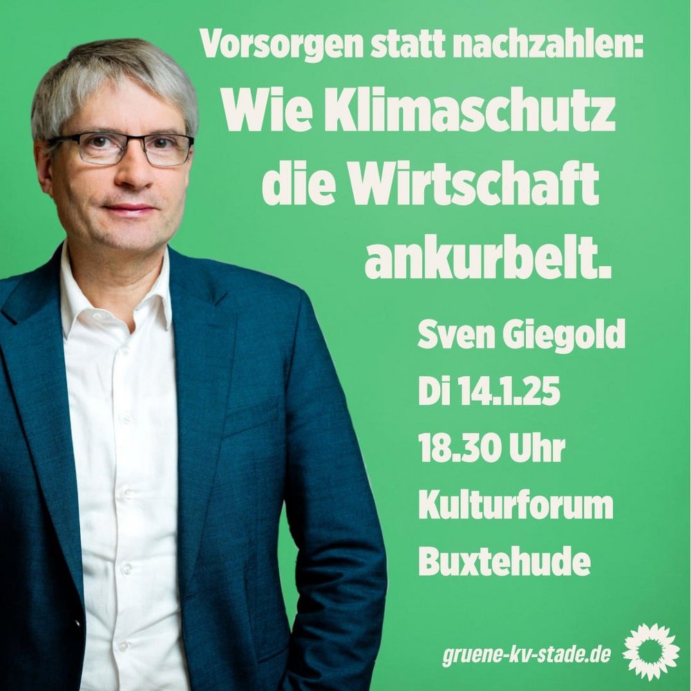 Dazu laden wir am 14. Januar 2025 um 18:30 Uhr ins Kulturform Buxtehude interessierte Bürger:innen, Menschen aus Wirtschaft und Industrie, sowie alle, die sich für Klimaschutz einsetzen, sehr herzlich ein.
