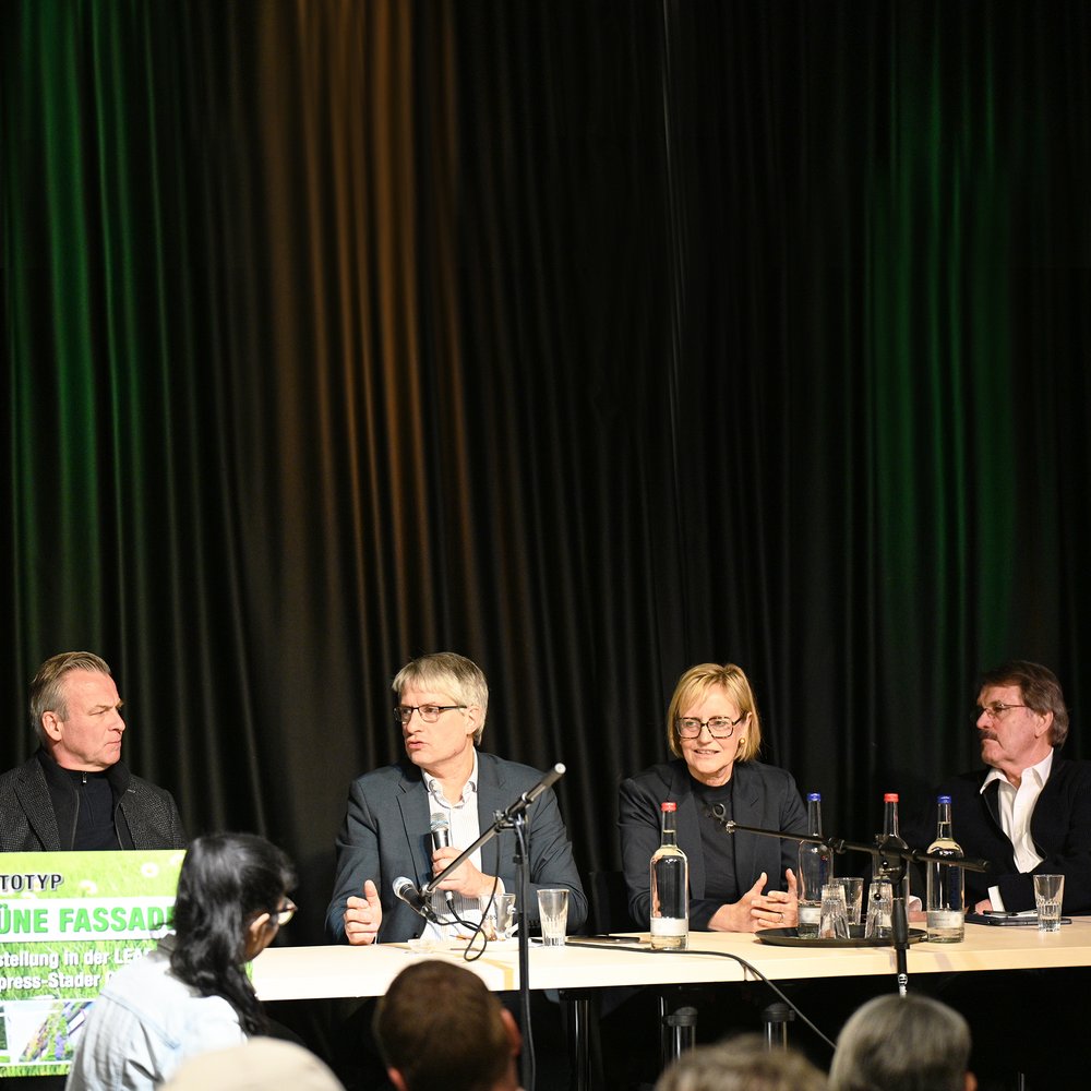 Christoph Nettkau (Navitas Umweltservice) stellte das Projekt vor, große Hallen nicht nur auf dem Dach, sondern auch deren senkrechte Wände zu begrünen. Damit könne in Gewerbegebieten und Städten die Erwärmung reduziert werden.
