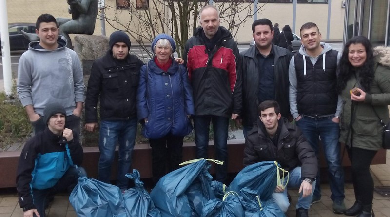 Am Samstag (21.03.2015) luden die Grünen aus dem Ortsverband Buxtehude-Apensen zu einer Müllsammelaktion ein. Das Ziel: Buxtehude vom unachtsam weggeworfenen Unrat zu befreien. Dem Aufruf folgten trotz Regenwetter mehr als ein Dutzend Freiwillige – neben Mitgliedern des Grünen Ortsverbandes engagierten sich vor allem syrische Flüchtlinge, die Innenstadt am Stadtgraben entlang zu reinigen. Einen Beitrag leisten zur städtischen Gemeinschaft - das war den jungen Männern und Frauen ein großes Bedürfnis.