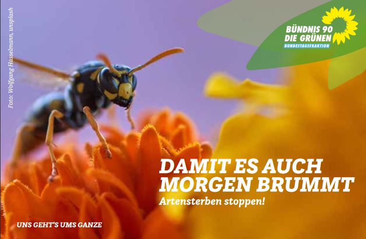 Um eine intakte Natur zu bewahren, sind grundlegende strukturelle und politische Veränderungen auf regionaler, nationaler, europäischer und internationaler Ebene notwendig. Dafür kämpfen wir Bündnisgrüne in allen Parlamenten. Doch um fortwährende Fehlentwicklungen und akute Bedrohungen abzuwehren, gilt es jetzt schnell und entschlossen zu handeln. Die Grüne Bundestagsfraktion bietet dazu eine kleine Broschüre mit den Grünen Vorstellungen an, wie wir zurück kommen zu mehr Artenvielfalt und das rasante Artensterben aufhalten könnten. Die Broschüre ist mit dem untenstehenden LINK herunterzuladen.